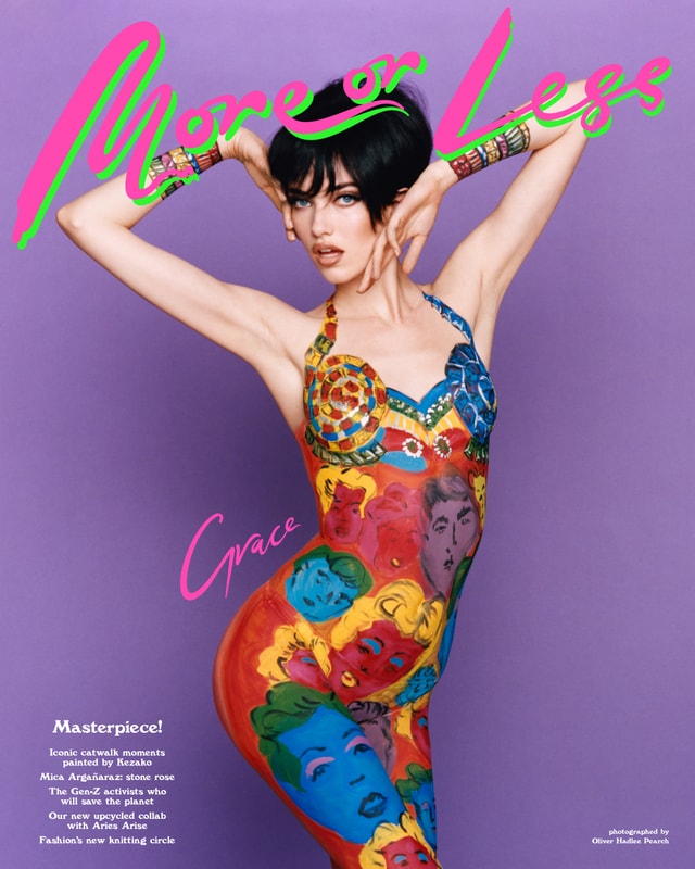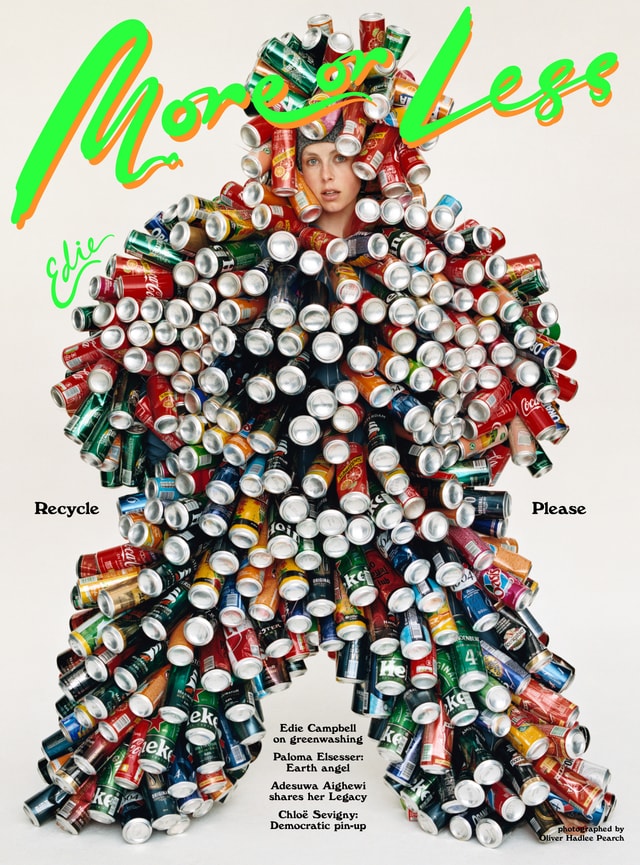 More Or Less was born, championing creativity over consumption - an annual print magazine featuring celebrities and top models using the crème de la crème of the fashion industry to create iconic editorials using vintage and eco brands only. Cover stars have included Kate Moss, Paloma Elsesser, Pamela Anderson, and Chloe Sevigny to name a few, with photographers like Jamie Hawkesworth, Oliver Hadlee Pearch, Zoe Ghertner, Tyler Mitchell and others as part of its roster.