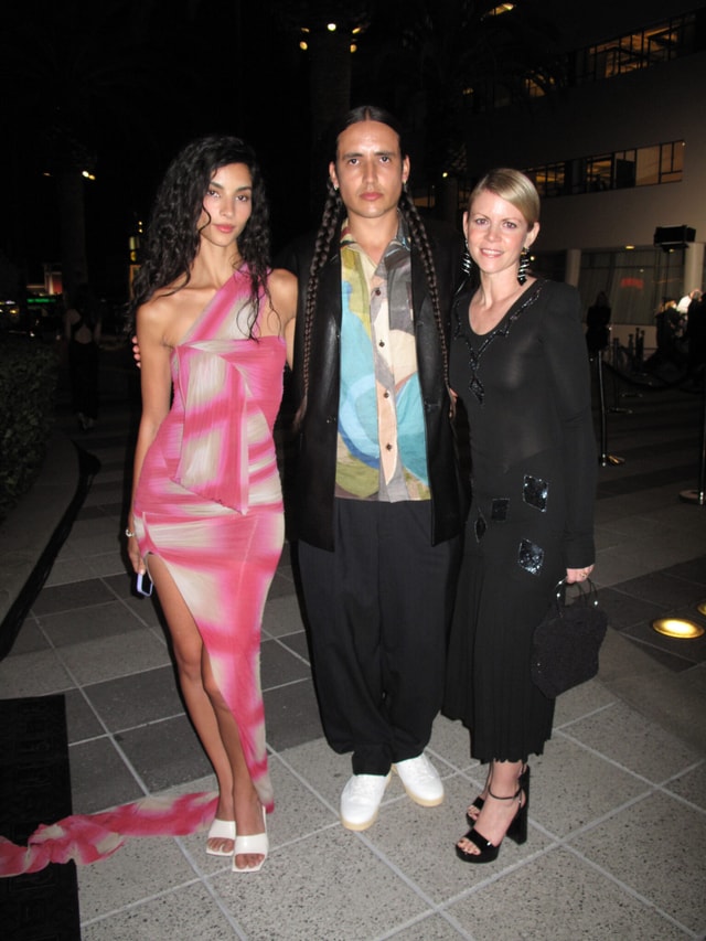 More Or Less joined the 2024 Green Carpet Fashion Awards with two powerful voices in sustainability: model and ethical fashion advocate Tindi Mar, and Indigenous rapper and activist Xucatzel. Dressed in curated looks from Farfetch’s Positively Conscious Edit, they embodied a vision of sustainability that merges environmental responsibility with cultural preservation and social justice.