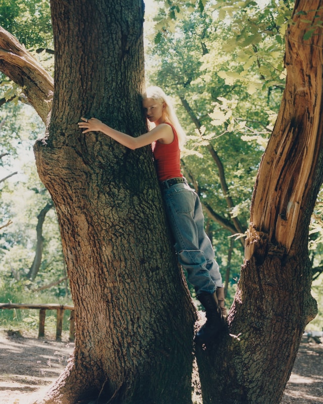 The stereotype of the "tree-hugger" — earnest, unglamorous, and sometimes mocked — has long been associated with environmental activism. But what if this cliché could be reinterpreted as something playful, stylish, and powerful? More Or Less set out to flip the script, bringing its signature wit and visual innovation to a classic environmental trope — while celebrating Re/Done’s commitment to circular fashion.