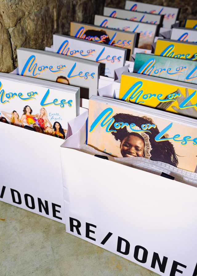 In a fresh, irreverent take on sustainability, More Or Less magazine partnered with Re/Done, the pioneering upcycled denim fashion brand, to create a dedicated editorial shoot and host an intimate, sustainability-focused dinner. The collaboration celebrated creativity, humor, and eco-consciousness — bringing a new attitude to the often-misunderstood image of environmental activism.